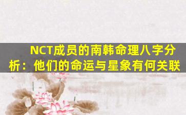 NCT(Neo Culture Technology)是韩国SM娱乐公司于2016年推出的一个全球化男子演唱组合,成员来自世界各地,他们不仅拥有出色的音乐才能,还拥有独特的个性和魅力。在南韩,命理八字分析是一种传统的文化,人们通过分析个人的出生年月日时来预测其命运和未来。那么,NCT成员的命理八字与星象之间有何关联呢?